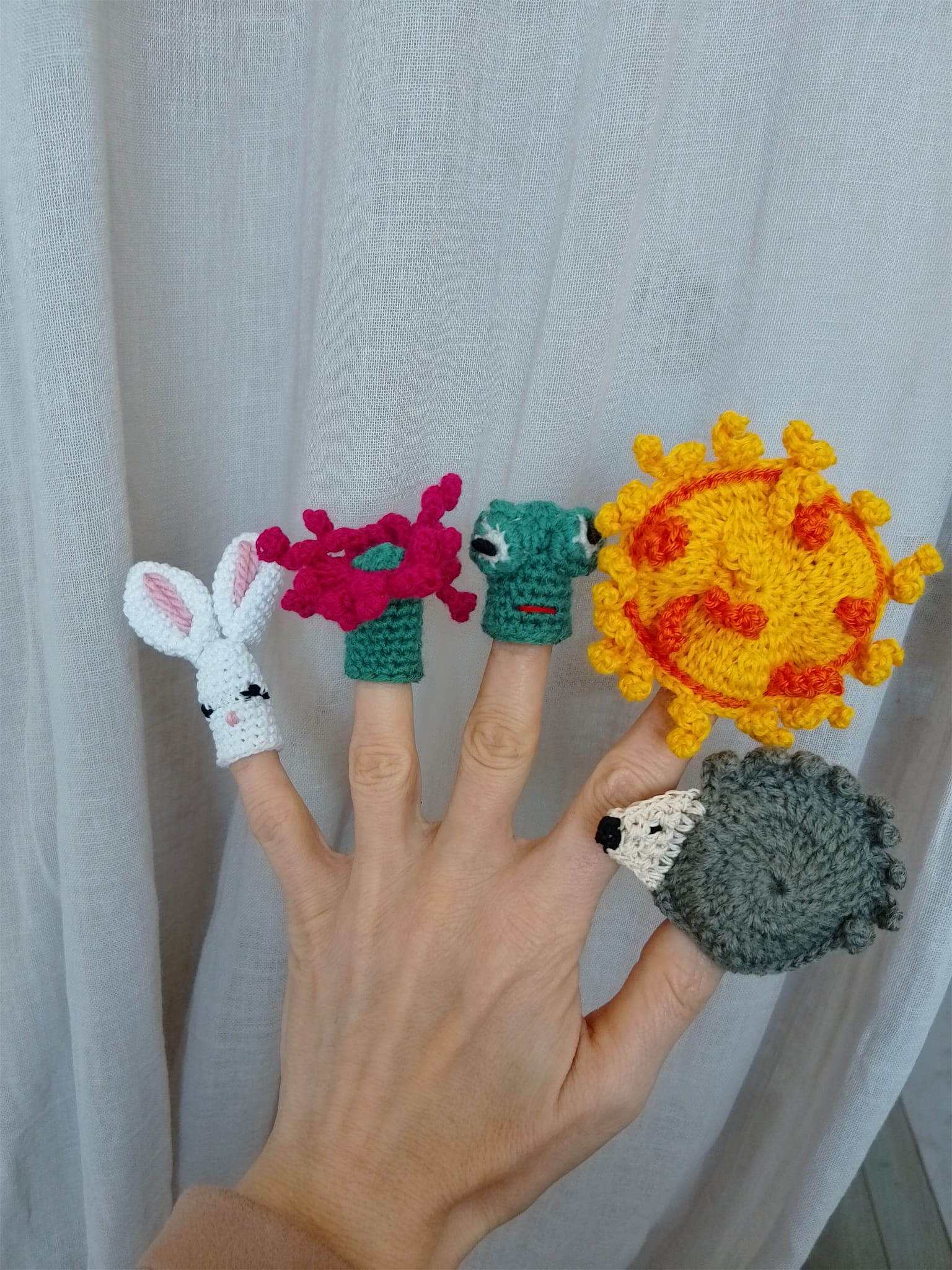 Finger Puppets croșetate manual, realizate cu grijă și creativitate din fire moi și colorate. Aceste jucării nu sunt doar distractive, ci și educative, contribuind la dezvoltarea limbajului, imaginației și atenției copiilor.